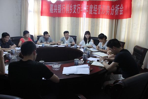 本网讯 7月13-14日,嘉兴银行桐乡支行召开半年度经营形势分析会,全行中层以上干部及部分业务骨干参加会议。
