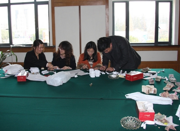 2012年11月24日,工行桐乡支行组织青年员工清点桐乡市红十字会爱心钱箱,用自己微小的行动表达一份爱心。