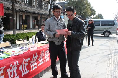 本网讯 嘉兴银行桐乡支行支行积极响应总行号召,并根据当地人行征信管理工作会议的布置,14日,召开专题会议,成立宣传活动领导小组,并在支行本部、濮院支行和崇福支行三地电子屏幕播放“全面贯彻《征信业管理条例》,促进征信业健康发展”宣传口号,并在各个网点设立征信咨询台,发放宣传折页;15日,深入到乌镇景区东大街开展金融宣传活动,向景区居民发放《条例》宣传单,提供相关咨询,取得了良好的社会效益。