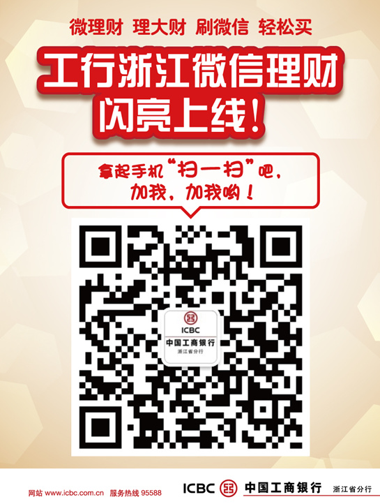 1.查找“工行浙江”微信公众账号或者扫描右侧二维码进行关注,即可查询浏览工商银行丰富全面的理财产品。