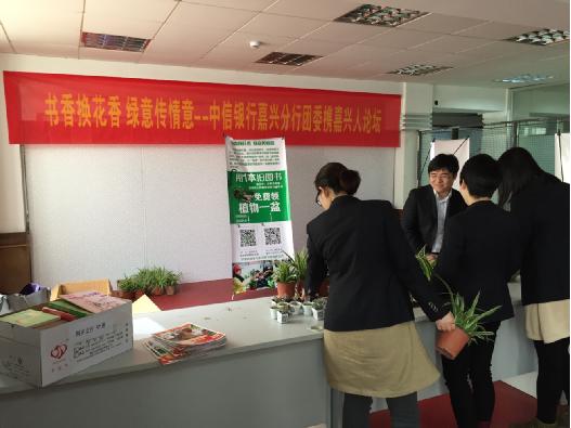 本次图书换绿植活动,由嘉兴团市委、市志愿者协会、南湖晚报主办,嘉兴人论坛、嘉兴爱房网承办。中信银行嘉兴分行团委积极联络对接,吸引了全行员工的参与。