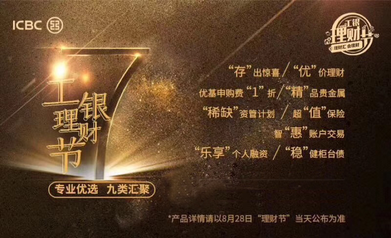 8月28日,中国工商银行将举办“工银理财节”活动,产品详情以“理财节”当天公布为准。