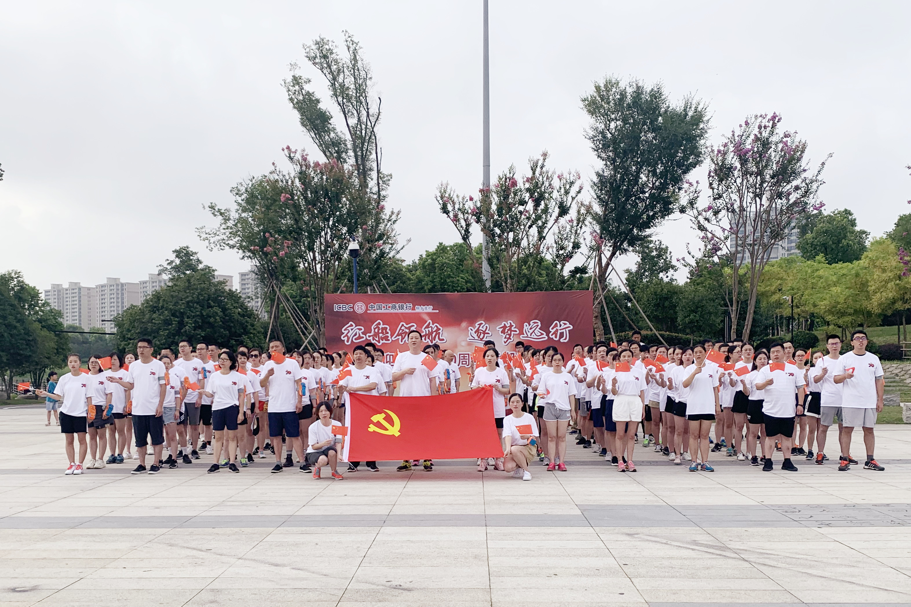为迎接新中国七十华诞,2019年8月24日,工行桐乡支行结合“不忘初心、牢记使命”主题教育开展“红船领航、逐梦远行”凤凰湖健步行活动。