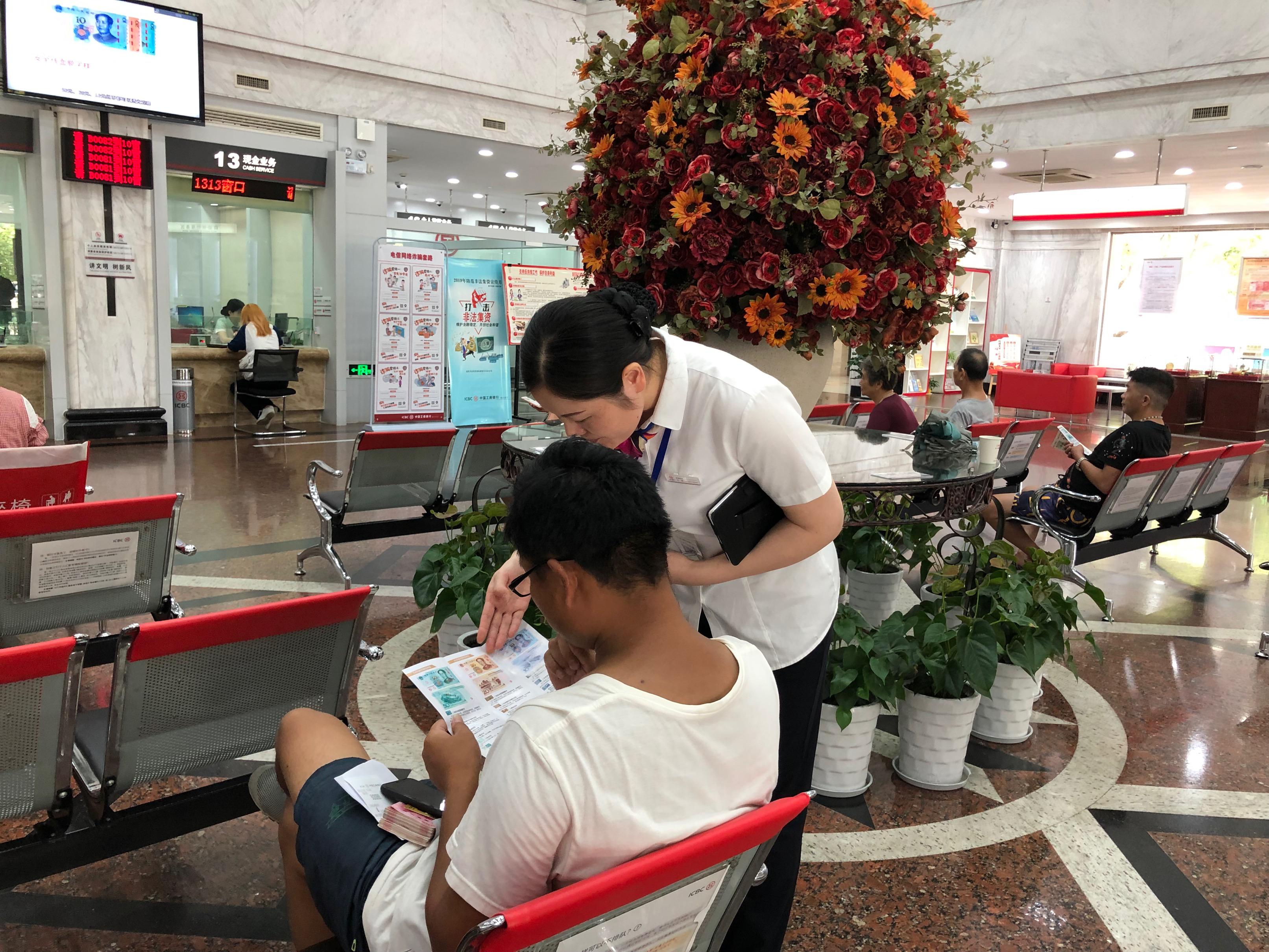 强化对内培训。早在8月上旬,该行组织全辖网点员工开展培训,系统性学习2019新版人民币防伪特征知识,要求熟知和掌握2019年版第五套人民币各面额防伪特征,参加并通过2019年新版人民币鉴伪识别测试。同时网点利用三会学习与传达上级行相关通知和文件,并对新版人民币发行后易发生的应急场景进行演练学习,切实做好客户的答疑解释工作。