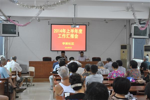 近日,学前社区在三楼会议室召开2014年上半年度重点工作回顾总结会议,全体社区工作人员、100多位居民小组长参加了会议。