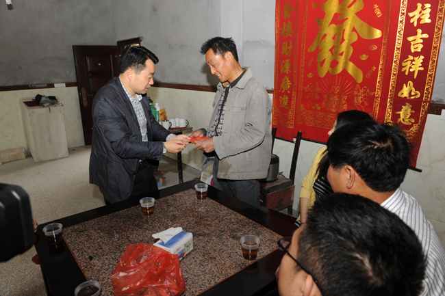 在西浜村,周国强来到曹金凤家,亲切询问了她在生活上遇到的困难,得知她视力残疾,且多病,丈夫在外务工,月收入仅1500,一家生活十分困难,周国强鼓励她要坚定信心、克服困难,并送上慰问金。