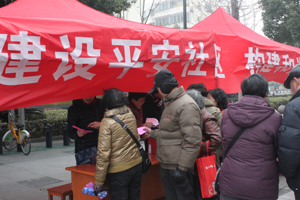 为深入推进平安浙江建设,营造深化平安建设,推进综合治理工作的良好氛围,着力提升平安创建工作的知晓率、参与率和满意率。1月15日上午,杨家门社区在大树广场开展了“建设平安社区构建和谐社会”的平安综治知有奖竞答活动。