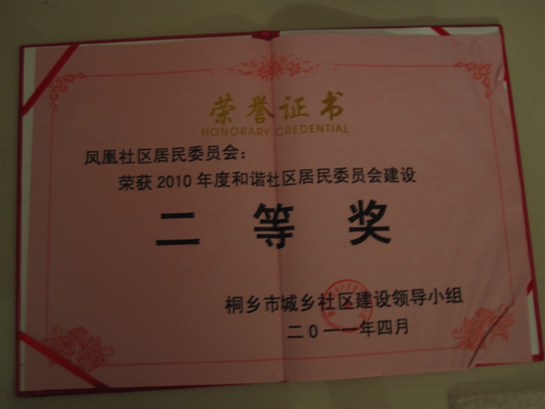 荣获2010年度和谐社区居民委员会建设二等奖