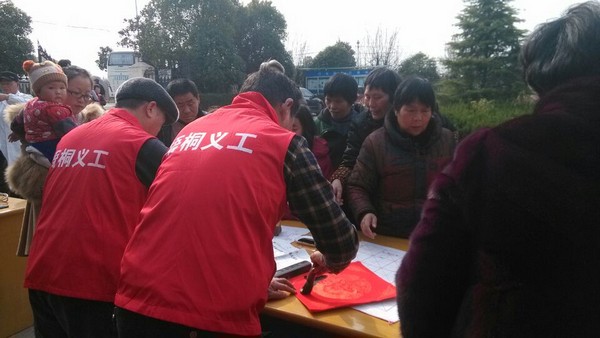 现场吸引了大量村民前来,有的村民还特地跑来量血压、看表演、拿春联呢!这边是计生联络员们为大家送上的歌舞节目,精彩的表演赢得了现场观众的阵阵掌声。那里是义工们挥毫泼墨免费赠送春联,一幅幅红彤彤的春联写满了吉祥的祝福,书写台前曾一度排起了长队,村民们在观看演出的同时又可以任意选取自己喜欢的春联。计生协会还紧紧抓住流动人口返乡探亲的有利时机,积极做好流动人口计生服务管理工作,免费发放《致流动人口一封信》,提高在场人员对流动人口政策的知晓率。