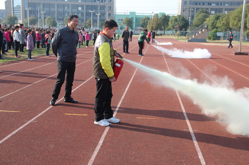 警报声起,同学们第一时间冲出教室,捂鼻猫腰,以迅雷不及掩耳之势在班主任老师的带领下,在相关老师的协助调度下,迅速地奔向大操场。经过整队和人数清点,并及时将数据上报本次演练总指挥、副校长郑惊女。最后,郑校长就本次活动作了总结讲话。她希望同学们进一步提升消防安全能力,加强四个能力建设,居安思危,时刻绷紧消防安全的心弦,并和全体师生再一次温习了灭火器的使用步骤及火灾发生的注意事项,让高年级学生进行了灭火器的实践操作演示。