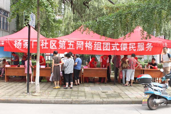 7月3日上午,杨家门社区在辖内迎凤一期开展第五网格组团式便民服务活动,为附近居民提供便利服务。