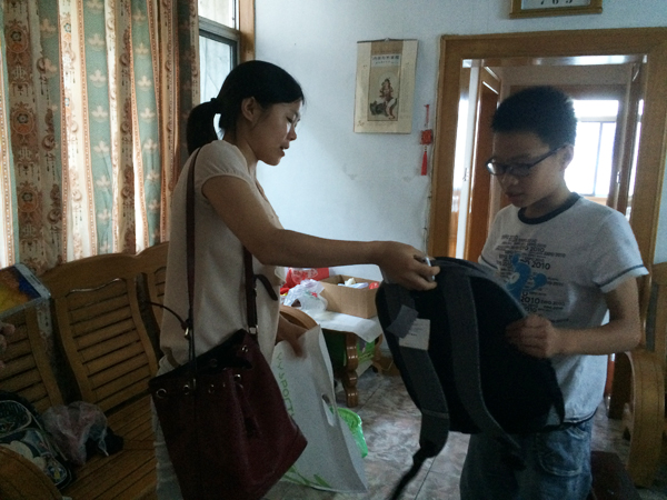 刚刚小学毕业的单亲男孩小云帆,下学期上初中了,终于用上了属于自己的新书包了,这让小云帆开心不已,每天学习劲头特别足,建设局的叔叔阿姨送的新书包和学习用品实在是不舍得天天用。看着儿子云帆的变化,最高兴还要数云帆妈妈。云帆妈妈感慨的是:“我们家云帆是自从爸爸离开之后,一直都是背别人书包,哪有新书包啊,一直盼着有个新书包,我都觉得愧对了孩子。今天新书包送过来他看到的时候,孩子可开心了,我和他爷爷当时在家激动的都不知道应该说什么。一个陌生人不但圆了我的心愿,还圆了孩子的心愿。现在我已经体会到了这次活动的好了,实在,实惠!”