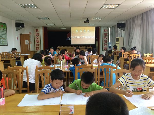 为在青少年中加强法制教育宣传,提高青少年遵纪守法的意识,7月10日上午,在东兴社区四楼报告厅举行了主题为“法在我心中”漫画活动。吸引了三十多名辖区内学生前来参加。