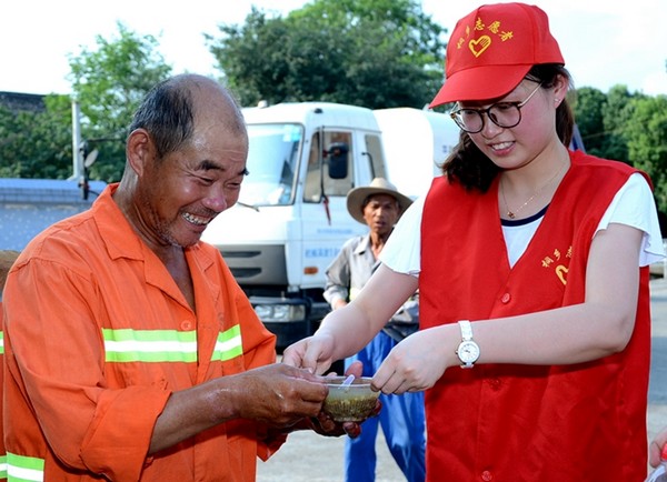 我们的行动换取了他们的笑容及歌声,特别是来自湖南的两位大妈,不自觉的唱起了“社会主义好!社会主义好”,还不停鼓掌,为我们的行为表示感谢,你们的肯定是对我们最好的回报。此次送清凉行动,将持续进行下去,在他们最需要我们的时候,我们就在身边!