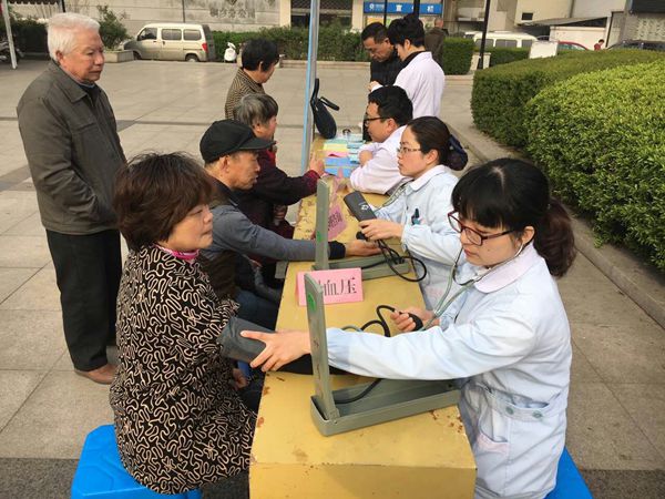 菊花广场上,康慈医院的专业医护人员为来往居民提供量血压和常见病问诊服务。同时还耐心为大家解答关于睡眠的问题。李奶奶感觉自己的睡眠质量不好,白天带孩子,做家务,晚上还要洗全家人的衣服,然后第二天就会有感觉很累。医生就建议她网上早点睡觉,并在中午孩子睡着后也能有半小时的午睡。