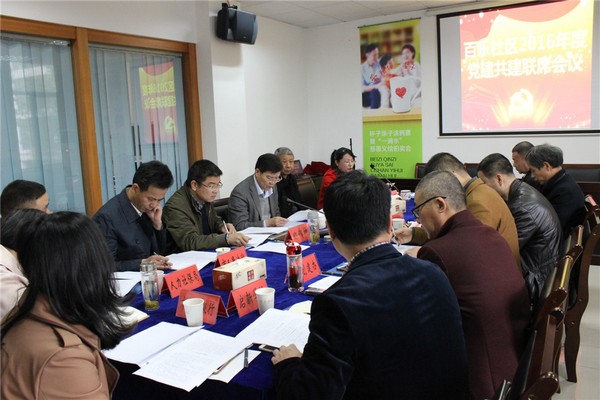 3月23日上午, “2016年度百乐社区党建共建联席会议”在社区二楼会议室召开。市人社局、市人民法院、市气象局、市创建办、城南派出所、华友钴业、启新学校等9家共建单位主要负责人,梧桐街道办事处相关领导出席了此次会议。