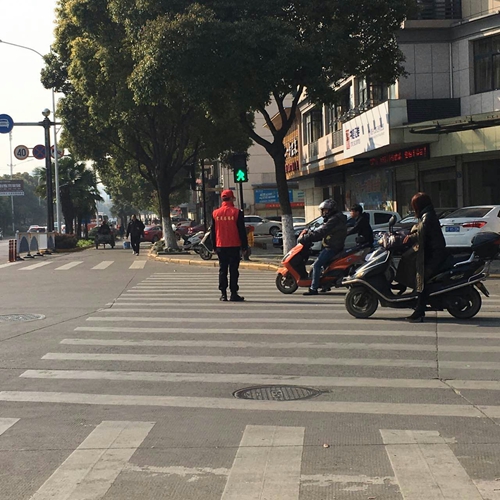 每月的最后一个周六,是桐乡市党员志愿者服务日。为了提高广大市民道路交通安全意识,引导市民养成文明出行的好习惯,营造一个安全、畅通、有序的交通环境,凤鸣社区组织在职在册党员开展“文明劝导我先行”活动,劝导行人的违章行为。