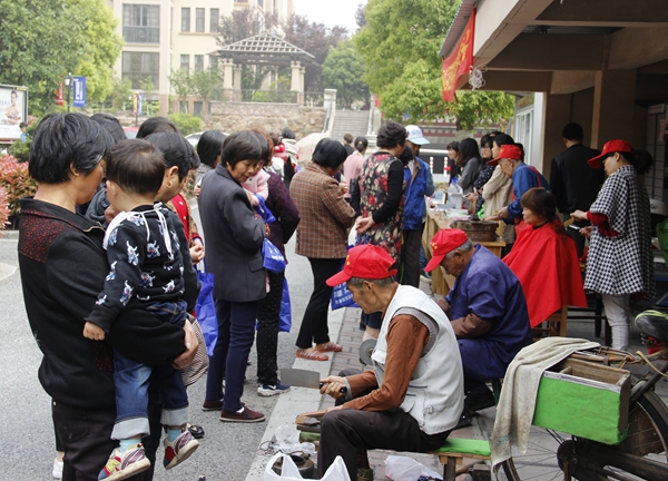 早上8点不到,志愿者们已开始忙碌起来,社区计生服务员除了向居民宣传计生知识,还向小区的育龄群众发放了“全面两孩”计生政策、“三优”知识等宣传资料和免费计生药具。爱心理发、免费量血压、免费磨刀的摊位前更是排起了长队。整整两个小时里,三位磨刀师傅一刻都没停歇,共为居民磨刀多达上百把,受到了居民的一致好评。