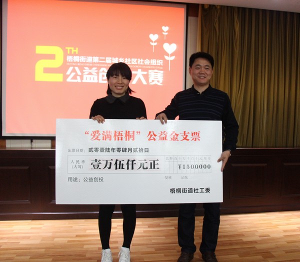 4月20日下午,梧桐街道举行第二届城乡社区社会组织公益创投大赛,共计120人次参加活动。这是继2015年设立“爱满梧桐”公益金后再次以“创投”的形式,由2位专家学者围绕项目可行性、需求广泛性、方法创新性以及项目示范性四个方面现场点评打分,由政府单位,各社区书记、主任,社区居民代表,社会组织代表组成的40人大众评审团进行举牌“点赞”。