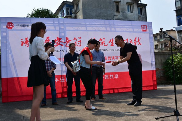 整场活动主要分为:“四感三率”的宣传、先进个人表彰、平安接力、消防实战演练等几个部分。在平安接力这一环节中,由今年新设立的平安守望员身披红色飘带,依次传递接力棒,并绕先锋新村篮球场一周,最后一位来自先锋新村看护点的平安守望员祝佳莉激动地说:“作为一名平安守望员,能够守护一方平安,我感到非常的开心。”同时她也呼吁今后有更多地居民加入到她们的队伍中来。顿时现场掌声雷动。