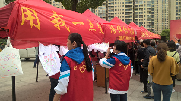 5月15日是全国第26个助残日,本次助残日的主题是“关爱孤残儿童,让爱洒满人间”。作为智障儿童关爱项目,爱陪伴飞翔项目于这一天的上午在滨河广场开展了一场“用我一点爱,陪伴你飞翔”的特殊公益义卖活动。