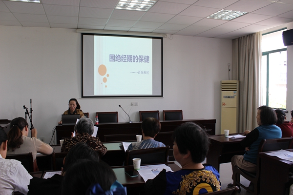 随着人们生活水平的不断提高,关爱女性健康越来越受到社会的广泛关注,为了迎接“5• 29”计生协会会员活动日,进一步提高社区妇女的保健意识和妇科知识。5月17日下午,百乐社区计生协会邀请桐乡市妇幼保健医院的潘惠玉医师给社区的妇女同胞带来了一堂关于“围绝经期的保健”健康讲座。来自辖区的30余位居民以及计生协会会员参加了本次讲座。