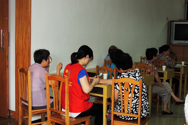 讲座开始之前,陈医师和他的同事便早早来到社区会议室,等候居民的到来。居民陆陆续续到来后,两位医生还免费为老年居民们义务量血压,并为老人们解答疑惑。