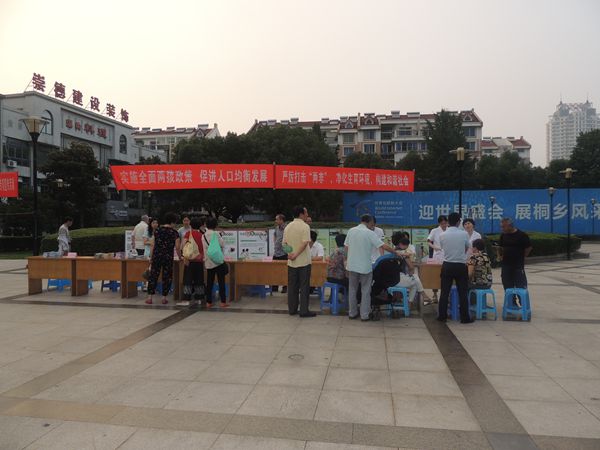 6月16日下午,桐乡市卫计局、梧桐街道计生办、永宁社区计生协会在菊花广场开展“全面两孩·整治两非”大型专项宣传活动。