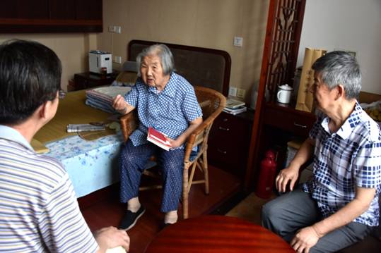 如今除了听力有些障碍之外,汪明珠老人依然思路清晰、反应灵敏。她说自己退休已经35年了,退休时间都超过了工作时间,想到自己从社会得到的多付出的少,心里就很感恩。虽然年老了,腿脚不便,但是她一直很关心社会的发展,对今年开展的“两学一做”主题活动也了如指掌。