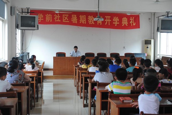 学前社区暑期教育活动在7月13日上午8点30分正式开学了。今天阳光明媚,同学们也早早的来社区三楼报到。