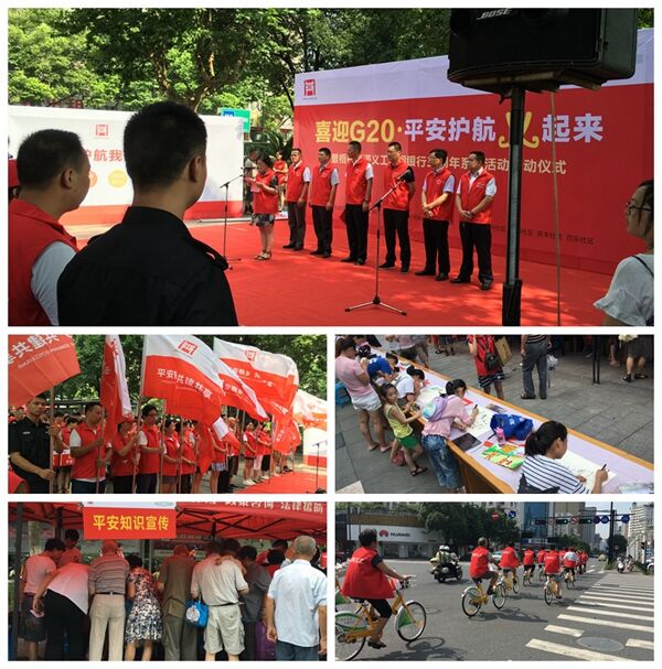 活动中,义工代表宣读了迎峰会平安护航倡议书,现场举行了“平安社区”现场授旗仪式以及开展了“平安护航我承诺”签字活动;另外,我们百乐社区还积极组织社区的平安家庭参与了现场的“长卷画平安”活动、“平安骑行”宣传活动以及现场的平安知识大宣传,以不同的形式来宣传和倡导平安建设,营造文明、健康、祥和、安定的社会环境,为G20峰会保驾护航。