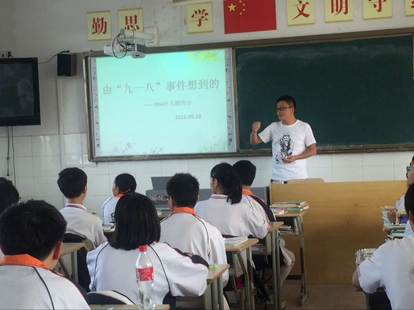 “1931年9月18日,日本帝国主义的爪牙伸向了中国东北,制造了震惊中外的“九·一八”事变,3000多万同胞在日寇铁蹄下饱受亡国奴的痛苦滋味。”904班主任余琪琳向学生简述了“九·一八”事变及充满血泪和屈辱的日军侵华史,以及艰苦卓绝的中华民族抗日斗争。各班还通过教室电视播放了相关影视片段,一幕幕反映日军暴行和同胞苦难的画面,深深地震撼了大家的心。