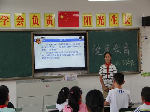 在本周的国旗下讲话上,学校分管安全教育的领导作了关于“校园安全健康”的主题讲话,从交通安全、校园安全、饮食安全、人身安全、健康教育、传染病预防与控制等方面对学生提出了“六点要求学校德育处充分利用电子显示屏全天滚动播放健康教育宣传标语,让全校师生深刻认识健康教育的重要性。少先队大队部在周二下午的少先队活动课上统一组织开展了健康教育活动。针对不同学段的学生开设了不同的讲座和主题班会活动:一、二年级组织学习了《秋季常见病防治》知识;三、四年级举办了“爱护眼睛,保护视力”健康知识专题讲座;五、六年级开展了健康教育主题班会活动。
