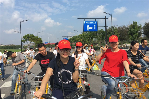 此次活动利用公共租赁自行车为骑行工具,以茅盾东路为起点,沿着绿色生态、景致如画的凤凰湖进行骑行。骑行活动中,莲花社区团支部不忘向居民宣传节能环保理念,倡导健康生活理念。