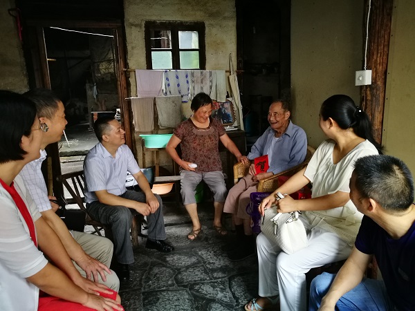 石锦文是永宁社区的百岁老人。得知有市、街道领导要来看望自己,老人早早穿戴整齐,在家中等候。慰问组与老人亲切交谈,关切询问老人的饮食、生活情况。看到老人家高寿康健,大家都给她道贺,并递上慰问品和1000元慰问金,希望老人家能继续保持好身体,幸福安康。