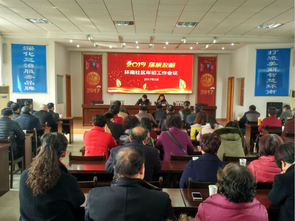 3月7日下午,社区在三楼文化礼堂组织召开年初工作会议,社区党总支书记周佳亮重点围绕街道中心工作以及“深化三治服务品牌,打造美丽智慧环南”的目标作了相关介绍,提出了深化三治宣传氛围、创新家委会三治载体、打造智慧居家养老服务照料品牌等设想与憧憬。