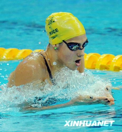 在10日上午的北京奥运会女子400米个人混合泳决赛中,澳大利亚选手赖斯打破世界纪录并获得冠军。