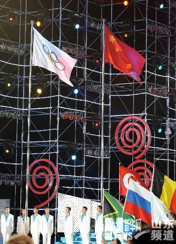 8月9日晚,青岛奥帆赛启动仪式在青岛奥帆中心主题公园举行。来自62个国家和地区的帆船代表队以及国际奥委会、国际帆联、北京奥组委的官员和代表参加了启动仪式,并观看了大型文艺演出《爱在海洋》。新华社记者 朱峥 摄