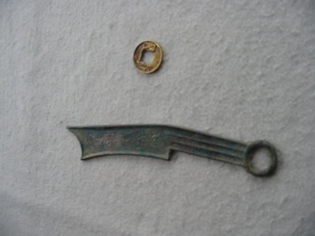 钟旭洲捐赠国家一级文物春秋战国“齐国六字刀币”和西汉“金五铢金币”。