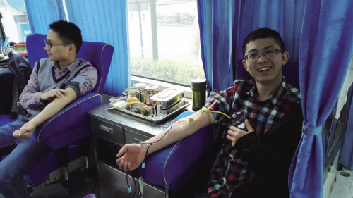 在采血车内,气氛轻松欢畅,一张张明媚、熟悉的笑脸上充满着自信。他们当中既有刚刚参加工作的新职工,也有工作多年的同志。大家仔细地填写表格、参加体检、化验,等待着爱心奉献的神圣时刻。虽然他们的年龄、工作经历各有不同,但他们对公益事业的热情支持和积极参与,不仅感动了自己,更感动了我们每一个人。当拿到属于自己的“无偿献血”证书时,他们脸上都露出了欣慰的笑容。一时间,献血现场处处洋溢着奉献爱心后的喜悦与自豪。