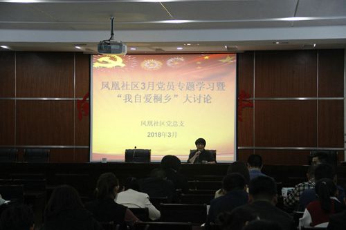 3月30日晚上,凤凰社区党总支在社区四楼会议室组织开展3月党员专题学习暨“我自爱桐乡”大讨论,会议由社区党总支书记李红霞主持,全体社区党员参加会议。
