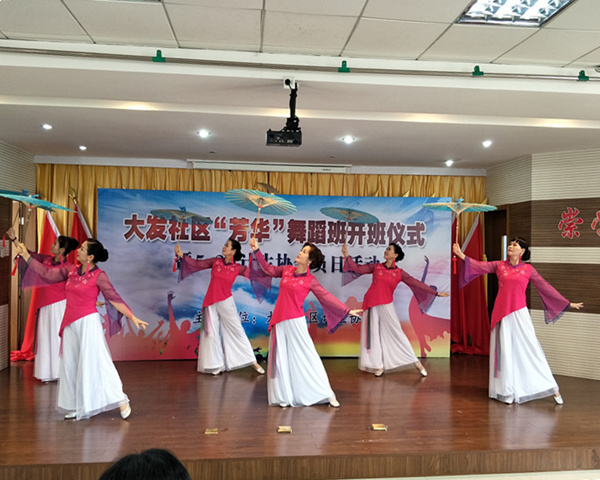 适逢计生协会会员日,为丰富计生协会会员业余生活,大发社区计生协会充分利用自有资源,开设了“芳华”舞蹈班。5月25日下午,大发社区计生协在社区文化礼堂举办“芳华”舞蹈开班仪式暨5·29计生协会员日活动。活动邀请街道计生办主任杨利英、副主任吴红,街道文体站副站长赵静兰出席开班仪式,活动还吸引居民组长和舞蹈班学员们参加并观看文艺演出。